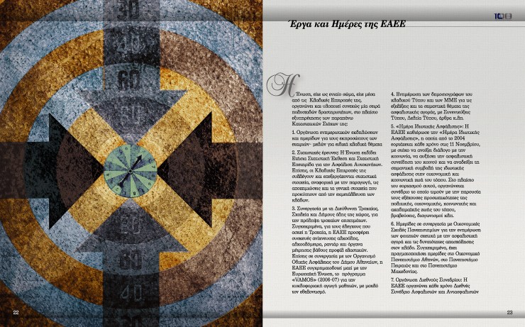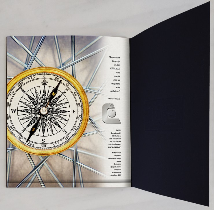 The paper used for the cover was an iridescent/metallic blue and the 100 years logo is embossed. • Το χαρτί που χρησιμοποιήθηκε για το εξώφυλλο είναι ιριδίζον/μεταλλικό μπλε και το λογότυπο των 100 χρόνων είναι ανάγλυφο.