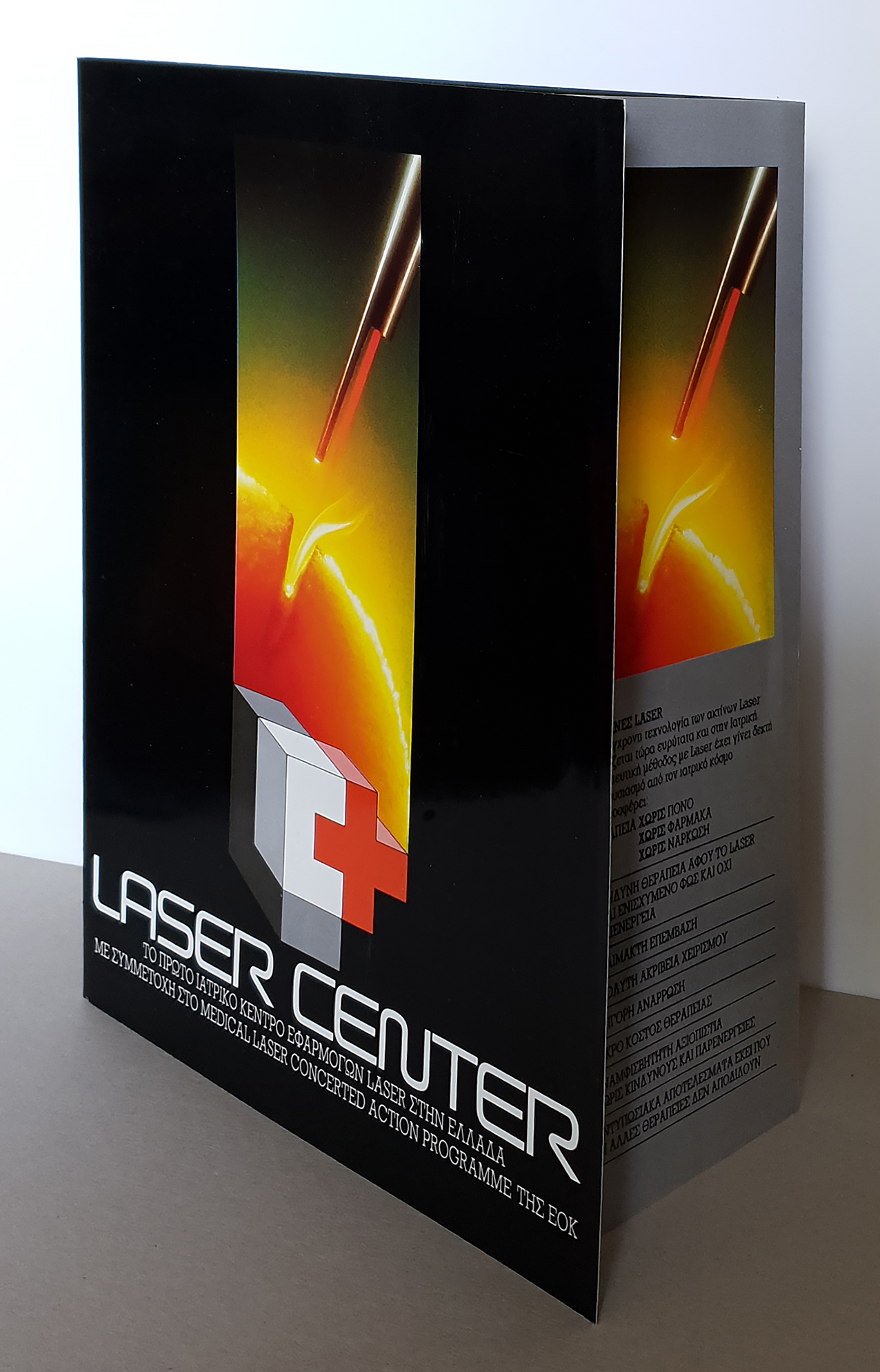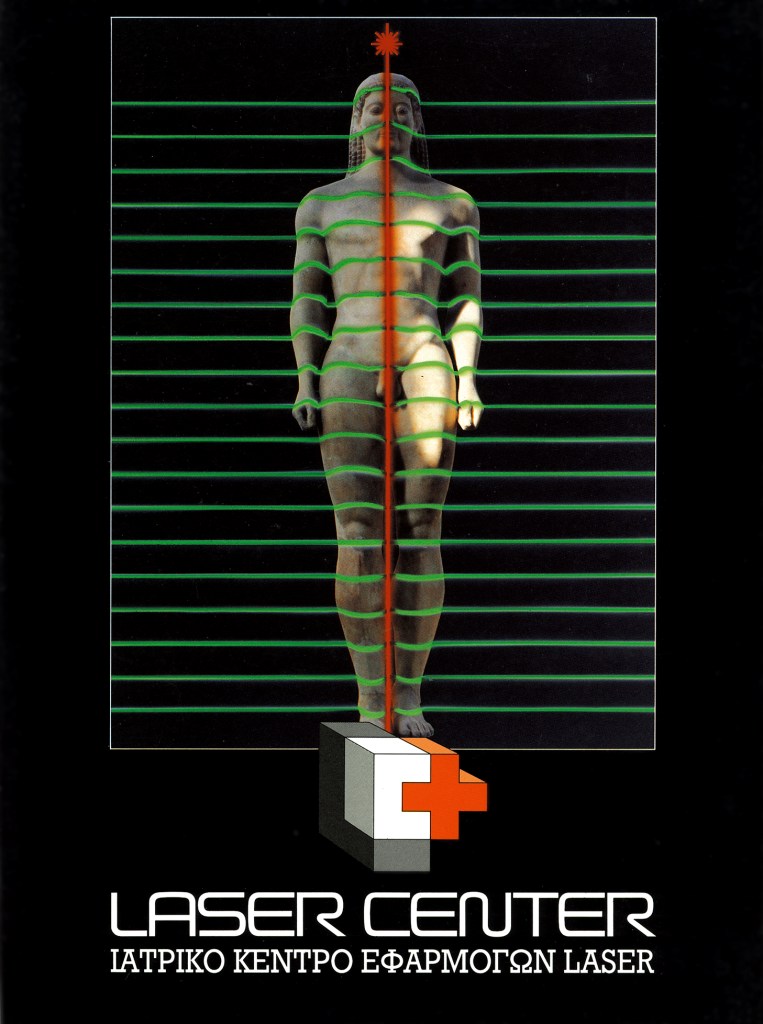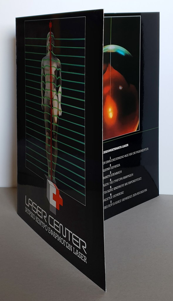 Two brochures designed for the first Medical Laser Application Center in Athens. The logo for Laser Center was also designed by Anakreon Kanavakis. • Τα δύο έντυπα σχεδιάστηκαν για το πρώτο κέντρο ιατρικό κέντρο εφαρμογών laser στην Αθήνα. Το λογότυπο σχεδιάστηκε από τον Ανακρέοντα Καναβάκη.