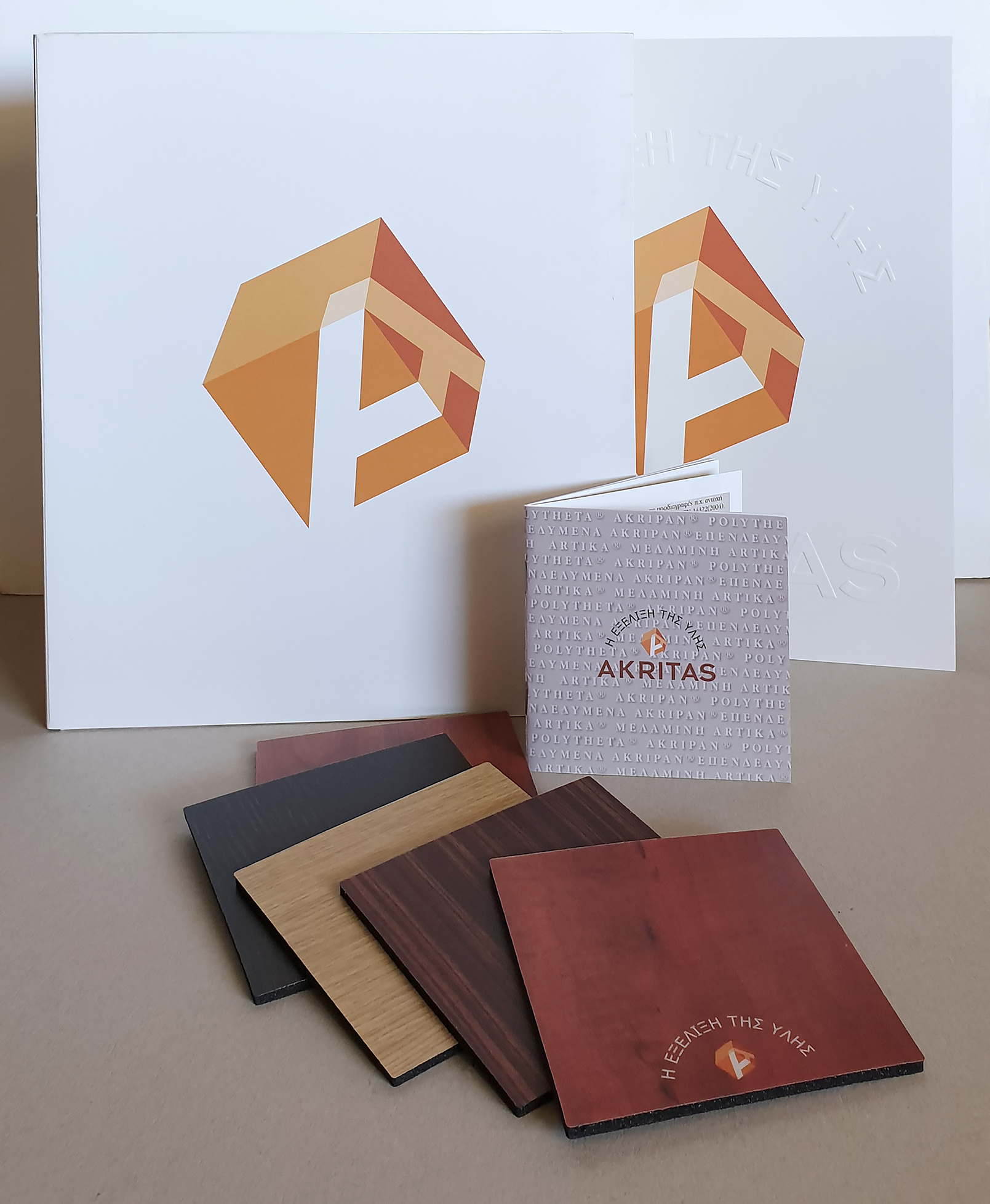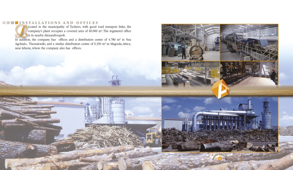 Ενα folder με μία μπροσούρα της εταιρίας, ένα έντυπο 16 σέλιδο των προϊόντων της και 5 σουβέρ με δείγματα ξυλείας.