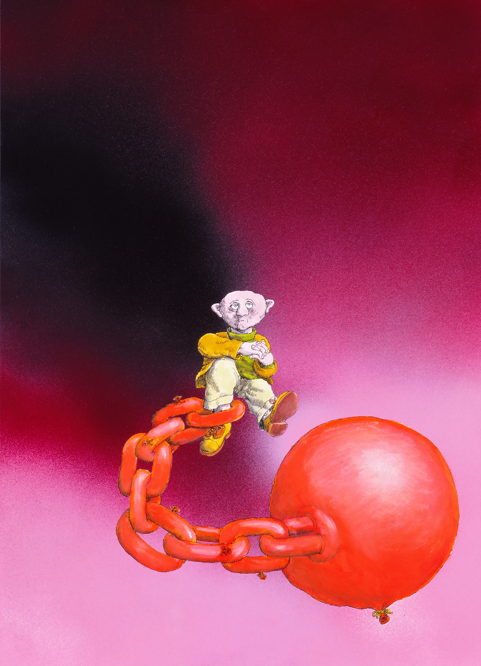 Hahaha! Floating with a balloons ball and chain. The lighter side of weighty captivity.