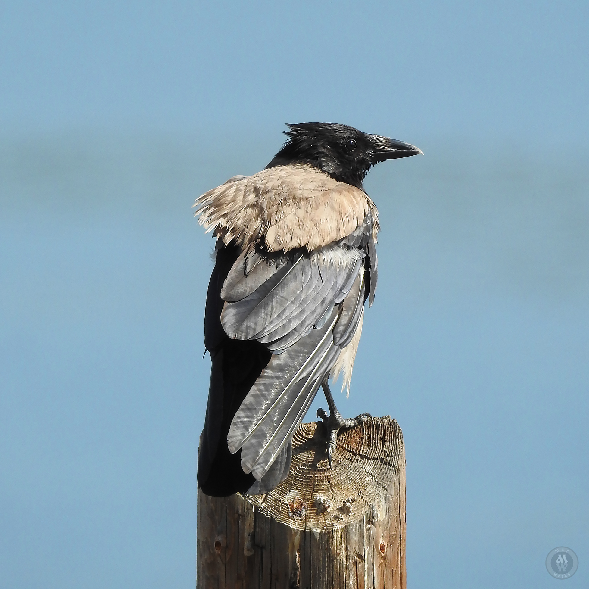 Your marine colors are soothing, and that raven! Looks like he’s wearing a mantle around his shoulders, the mantle of a Poe-et 🙂 🙂