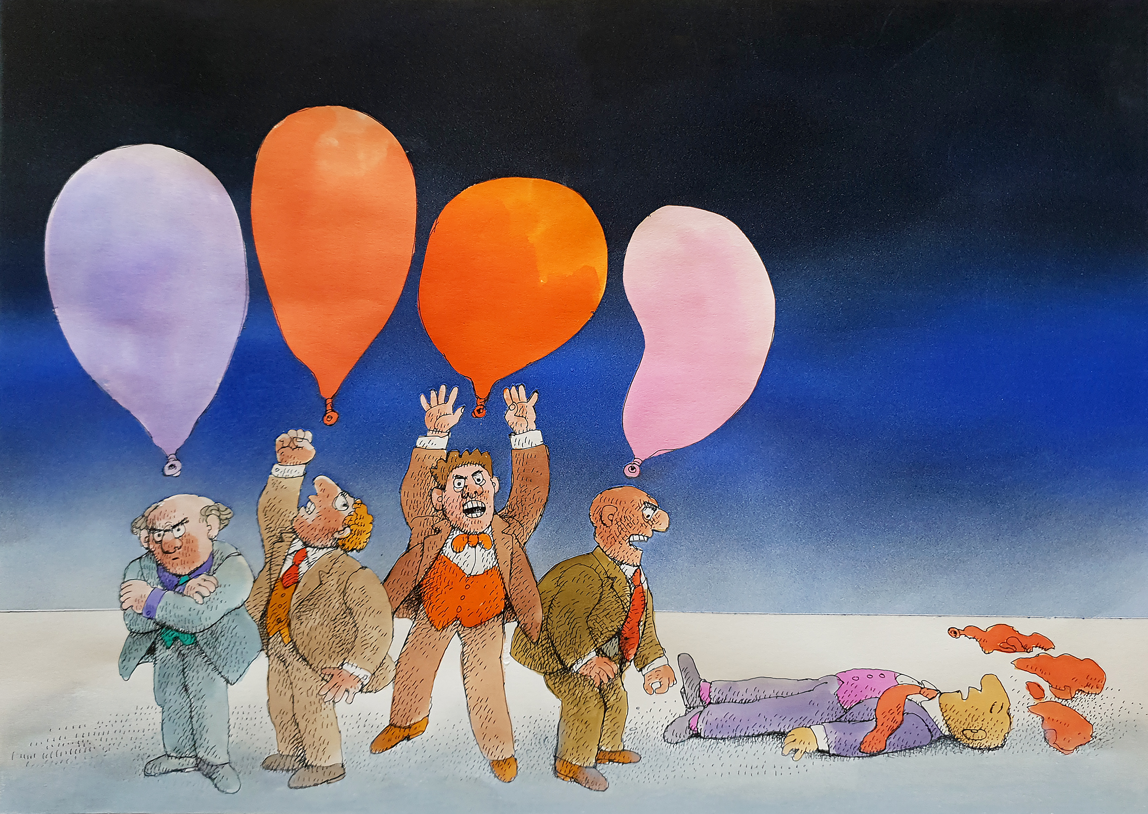 I felt that the following explanations were necessary for the understanding of the seriousness of the subject that unfolds in the pages of this book. Babiniotis dictionary refers to the word Pomfolygas, as words empty of content, silly chatter, babble, chatter, nonsense, gibberishm, balderdash, blather. However, the entry “Pomfos” is interpreted as “any kind of blister on the skin, which is not due to serious pathological causes”. The balloons, which I called “Pomfolyges”, hover in the paradox of their own etymology. They have resulted from a pathological process that I have to put to the test: Multiple infection developed blisters on my central nervous system, which very quickly spread to the skin and then were detached and filled the space. I have tried, as a meticulous scientist, to closely monitor the symptoms of the disease. I recorded them. So I deliver these images for the use of intelligent scholars, who will deal more systematically and possibly solve the clinical mystery: how blisters of an infection turned into empty content and nonsense. I must also add a syndrome that should not be concealed: In the terminal stages the patient [e.g. me] is occupied by an obsessive tendency to “bubblize” everything that falls under his attention. Finally there is a feeling of being surrounded by balloons, bubbles, blisters, blisters, bubbles, puffs, which in turn enclose everything. A light and yet unbearable world. [Ref. literature by Dr. Milan Kundera]