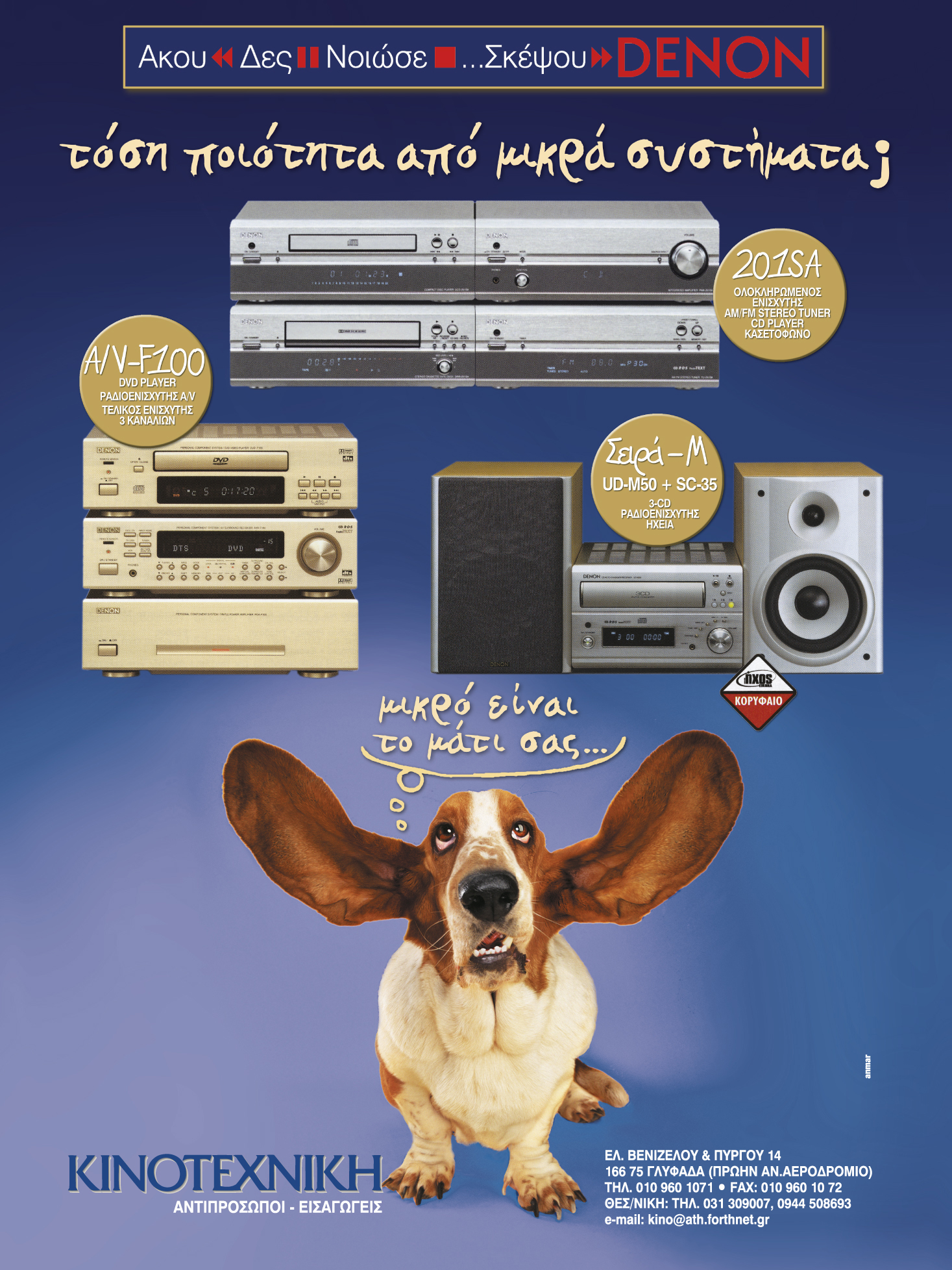 Advert designed for hi-fi audio devices. • Διαφημιστική καταχώρηση για στερεοφονικά hi-fi.