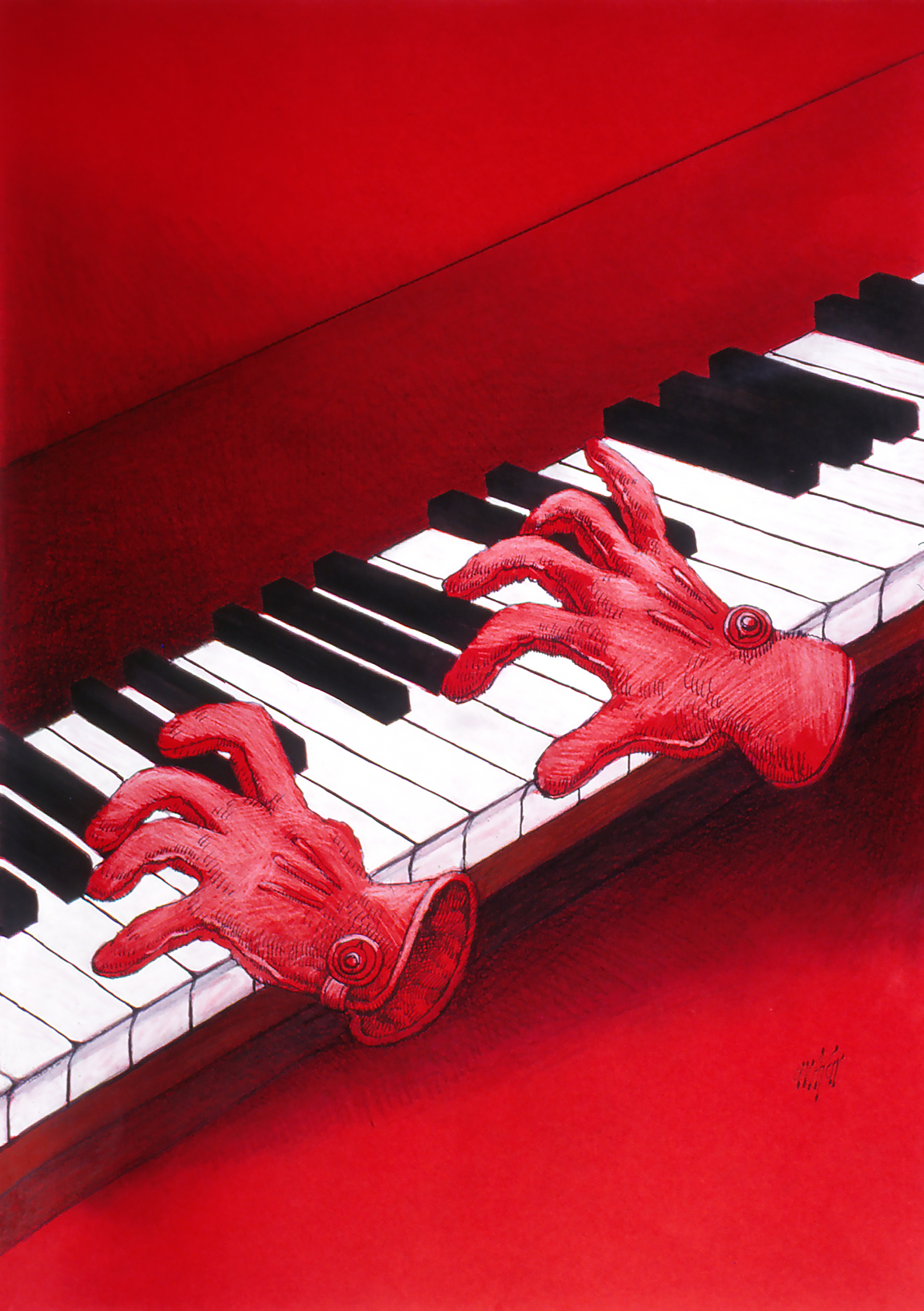 στα πλήκτρα με δεξιοτεχνία.