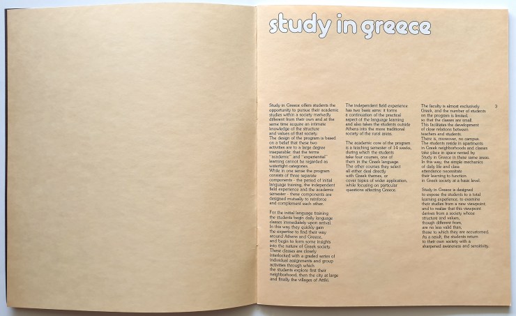 Well designed brochures. That would have been fun to study in Greece back in the day.