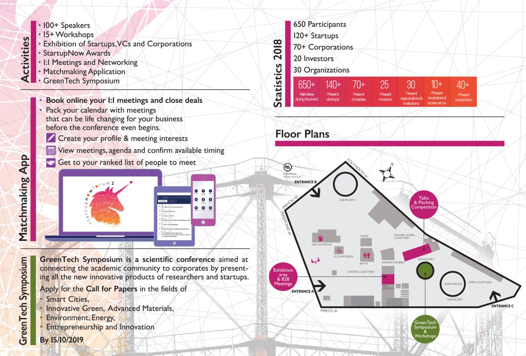 A 4 page leaflet for a forum for startups. • Τετρασέλιδο φυλλάδιο για forum startups.