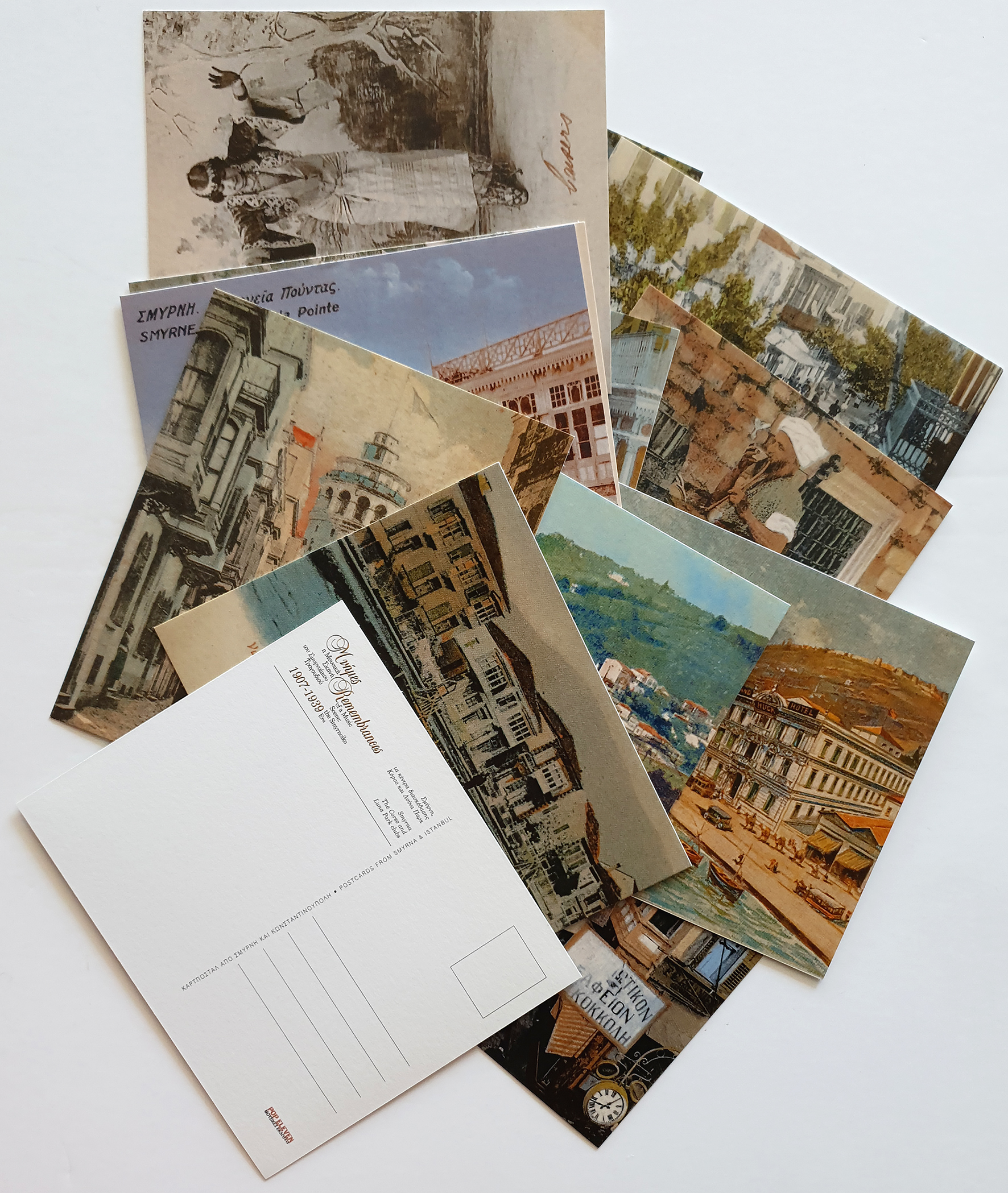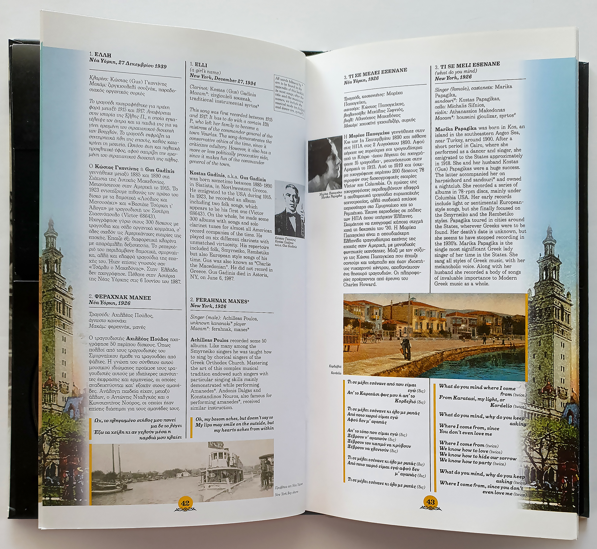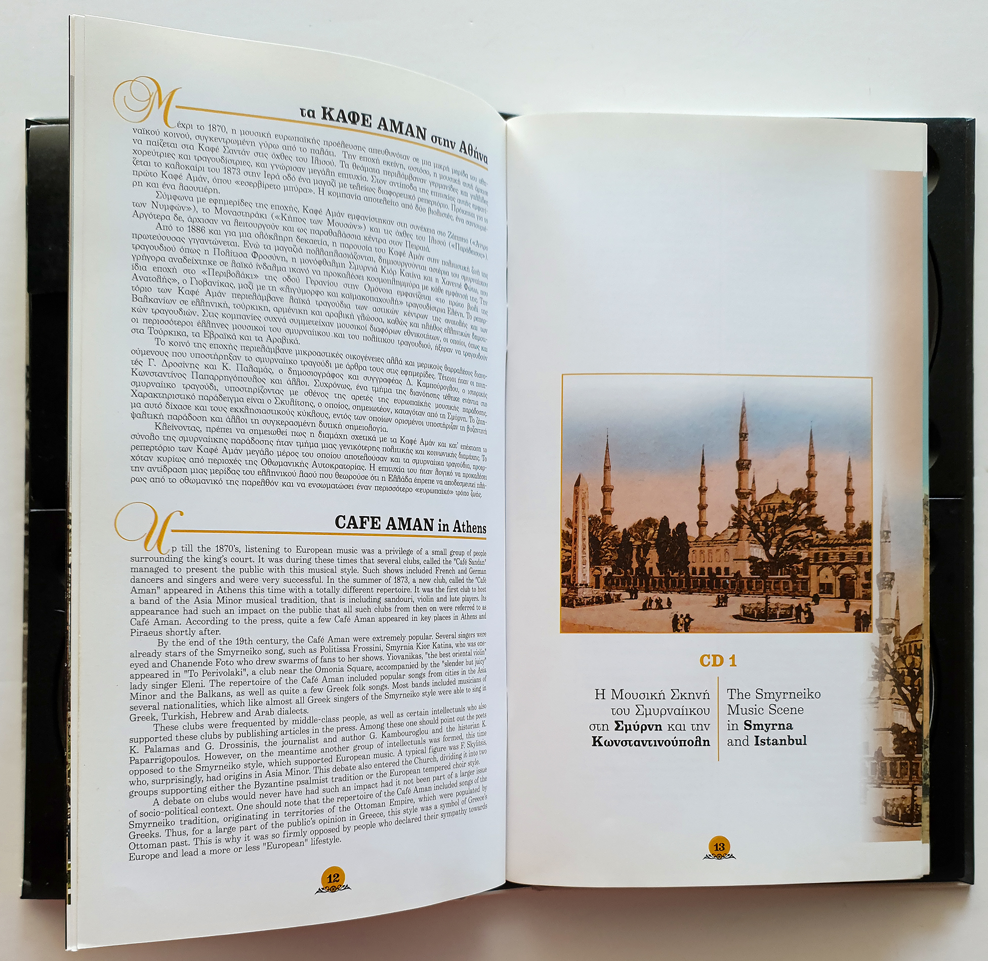 A luxury edition for a song collection that includes 3 cds, 14 rare postcards from Smyrna before 1922 and a 60 page booklet in both Greek and English. Title and details on the cover are printed in gold. A collector’s item. Σχεδιασμός έκδοσης για επετειακή συλλογή που περιλαμβάνει: 3 cds, 14 καρτ-ποστάλ της εποχής και ένα ένθετο 60 σελίδων σε δύο γλώσσες. Χρυσοτυπία στο εξώφυλλο. Συλλεκτικό.