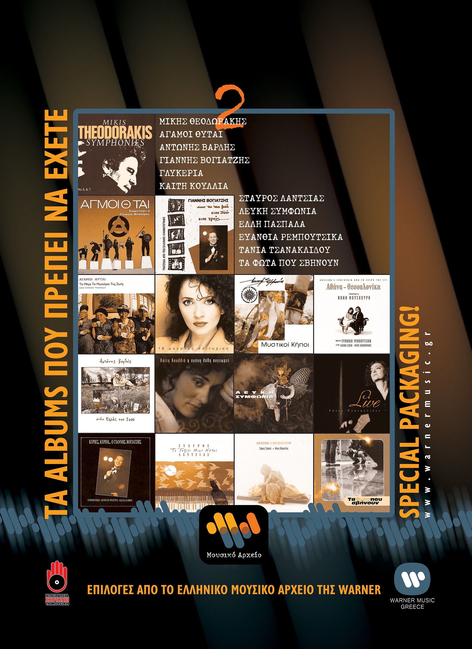 Advert for the second musical archive of a record label. Same concept as the leaflet. • Καταχώρηση για το δεύτερο μουσικό αρχείο δισκογραφικής εταιρίας. Ιδιο concept με το εντυπάκι.