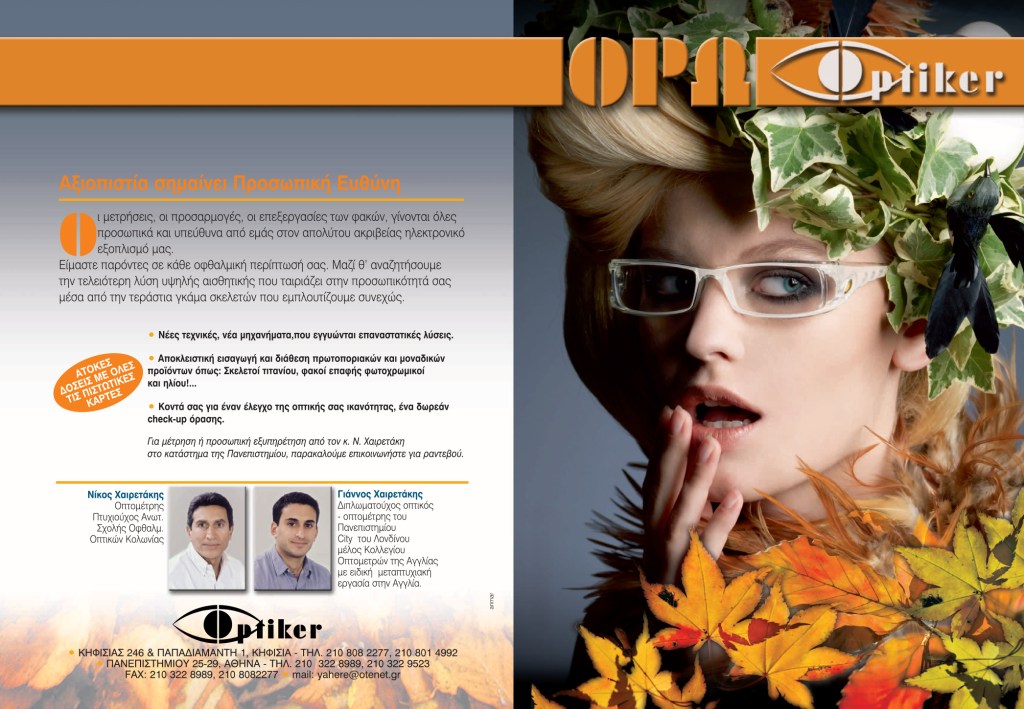 A mini quarterly magazine for an optometrist shop. • Μίνι τριμηνιαίο περιοδικό για κατάστημα οπτικών.
