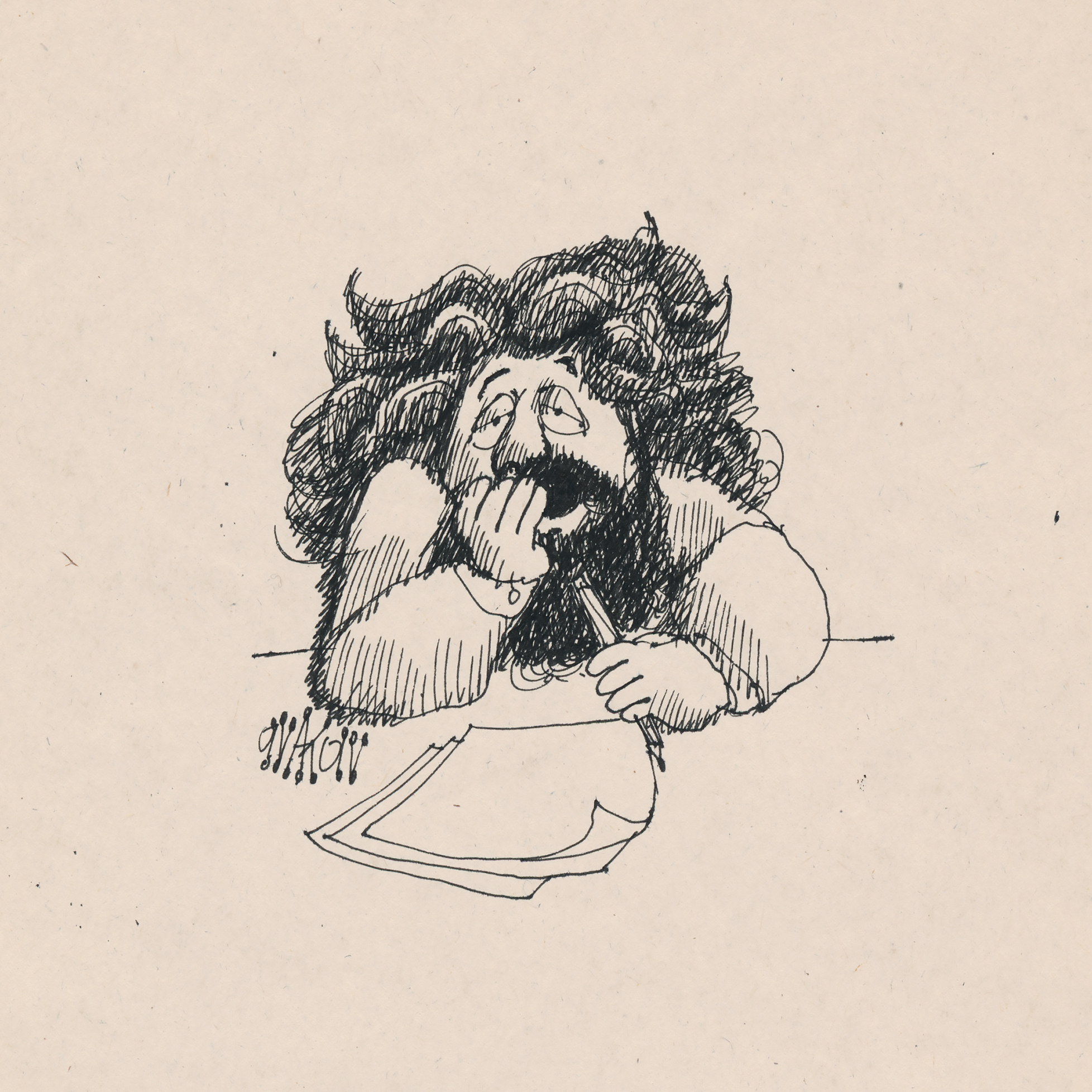 Put aviator glasses on him and you have Jerry Garcia thinking, writing, gratefully undead.