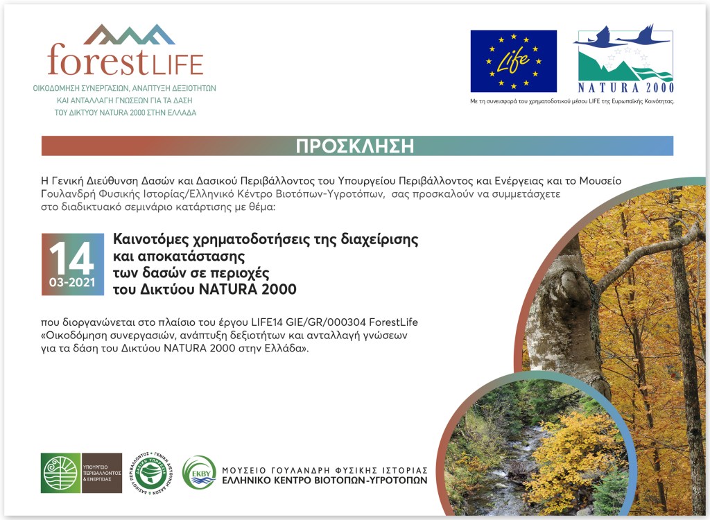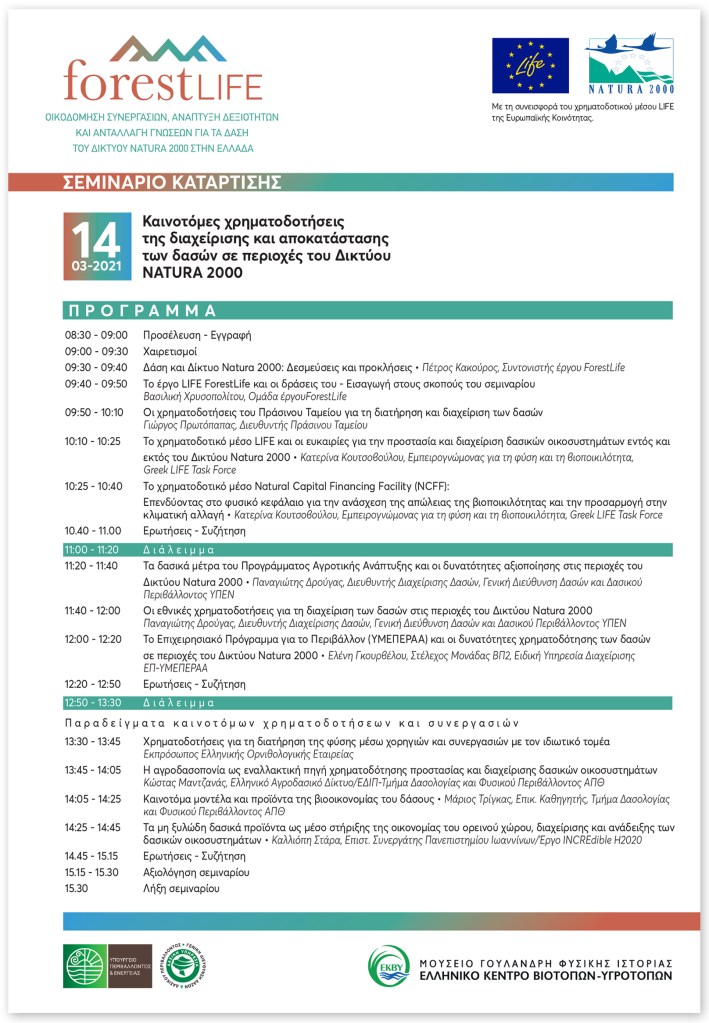 Invitation & seminar program designed for a project for the protection of Greek forests. • Πρόσκληση & πρόγραμμα σεμιναρίου σχεδιασμένα για έργο προστασίας Ελληνικών δασών.