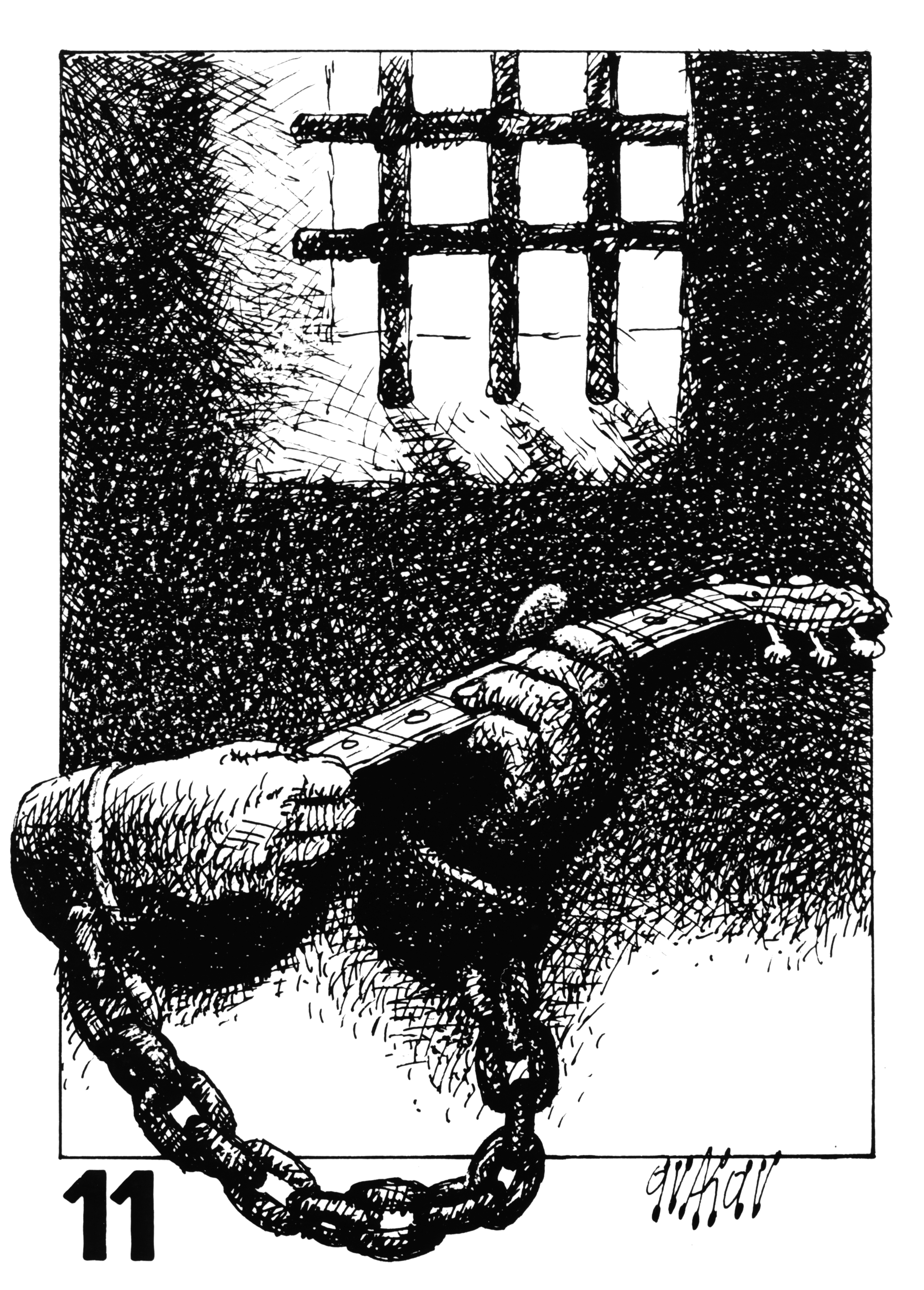 A prisoner rebetis playing the Baglama [small bouzouki]
